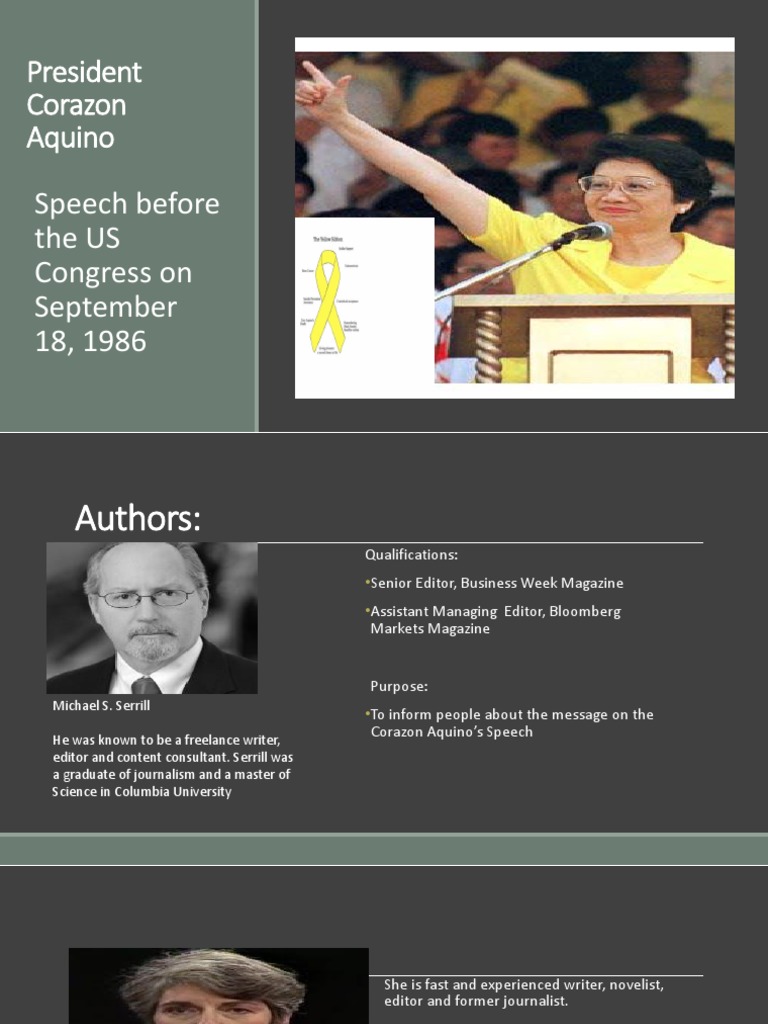 Aquino iii victoria elisa shortly after leaving the presidency, aquino traveled abroad, giving speeches and lectures on issues of. In 1980 benigno aquino jr. Share corazon aquino quotations about democracy, country and peace. Congress, aquino claimed that she would go to any. Corazon aquino us congress speech.